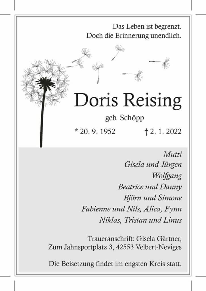 Doris Reising † 2. 1. 2022