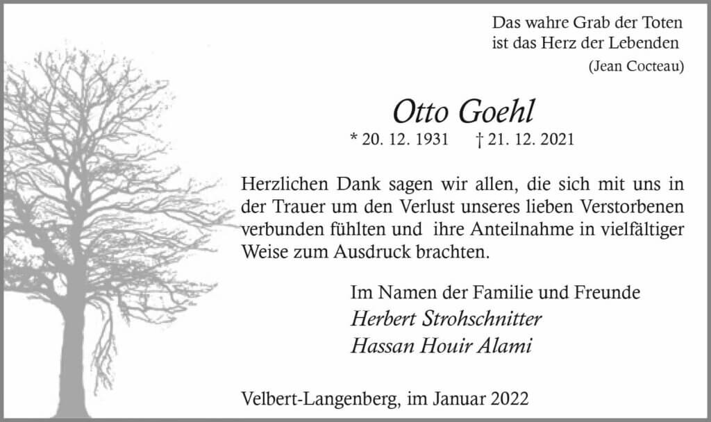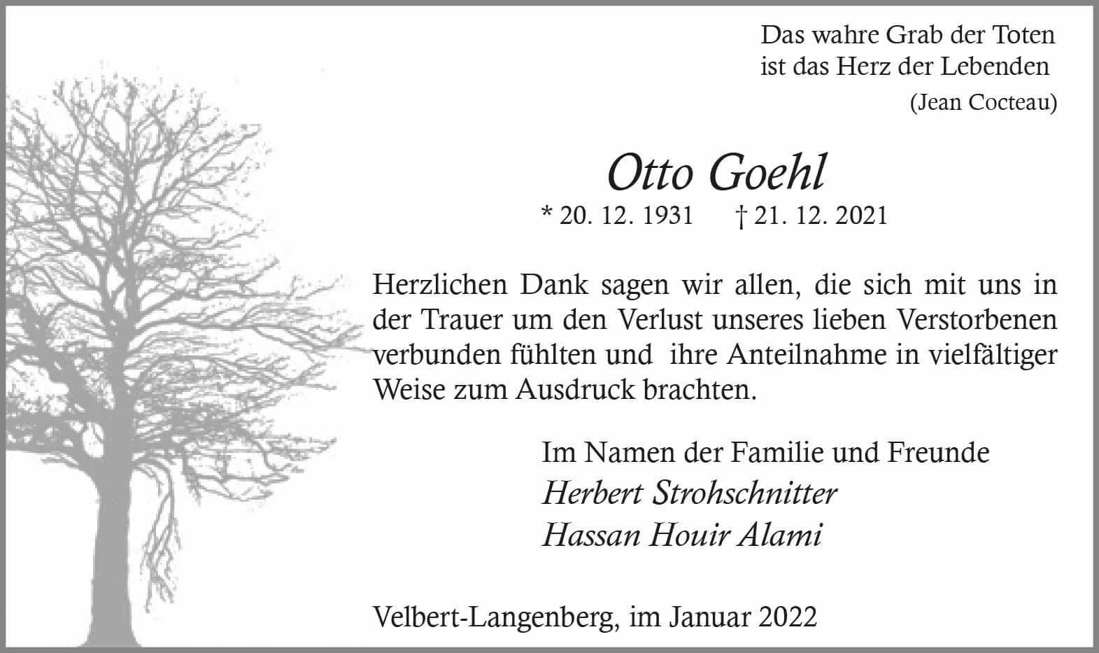 Otto Goehl  -Danksagung-