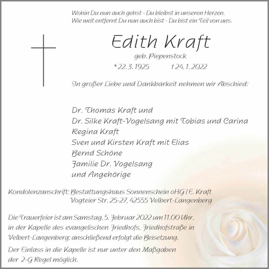 Edith Kraft † 24. 1. 2022