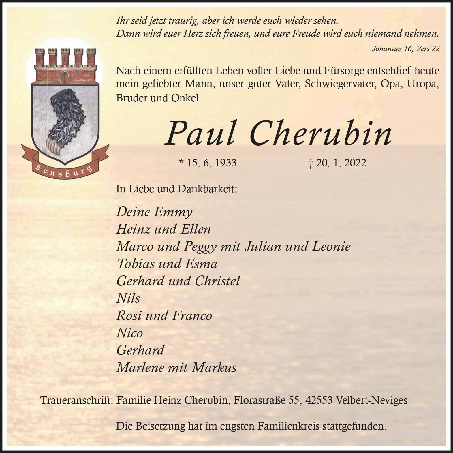 Paul Cherubin † 20. 1. 2022