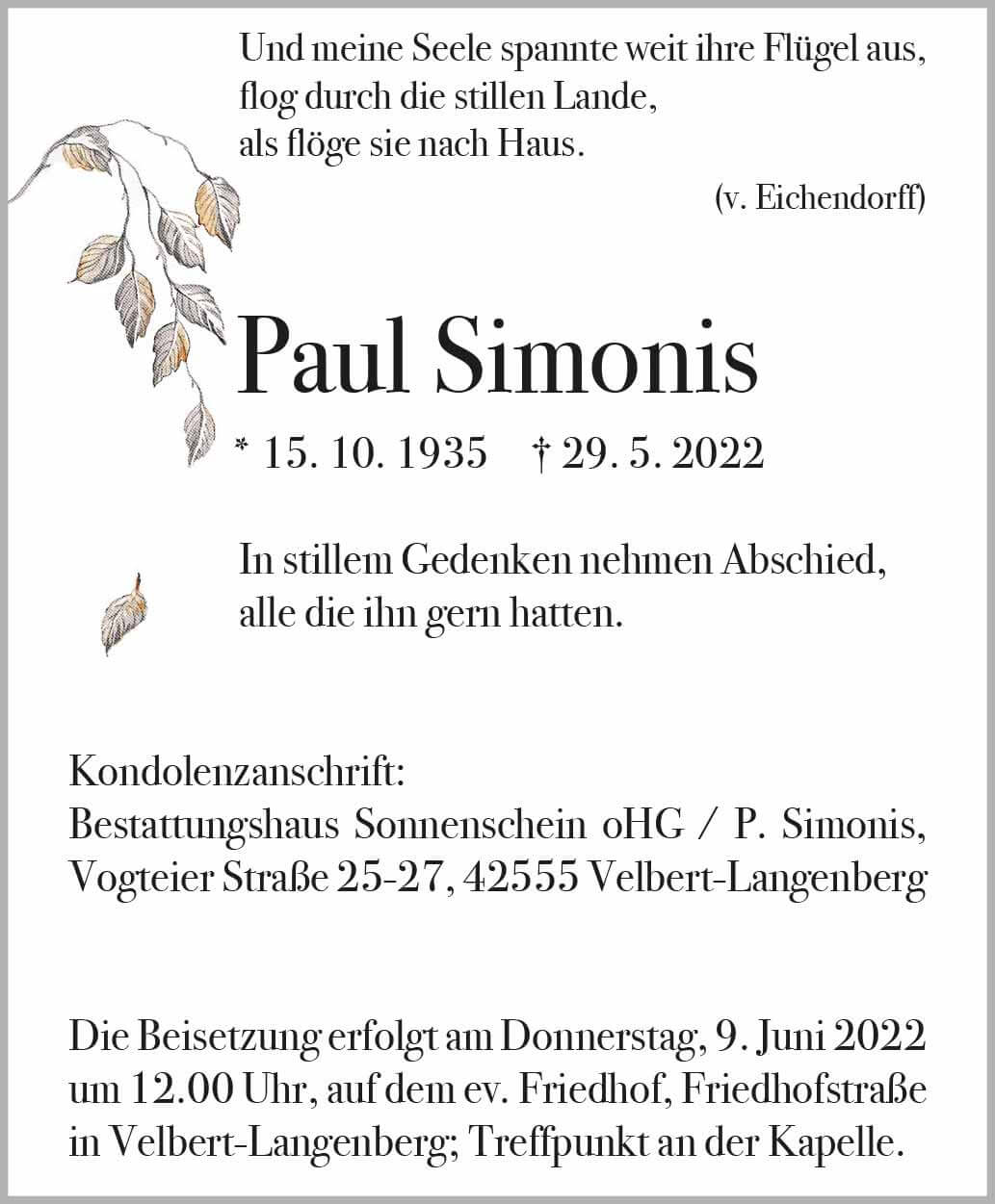 Paul Simonis † 29. 5. 2022
