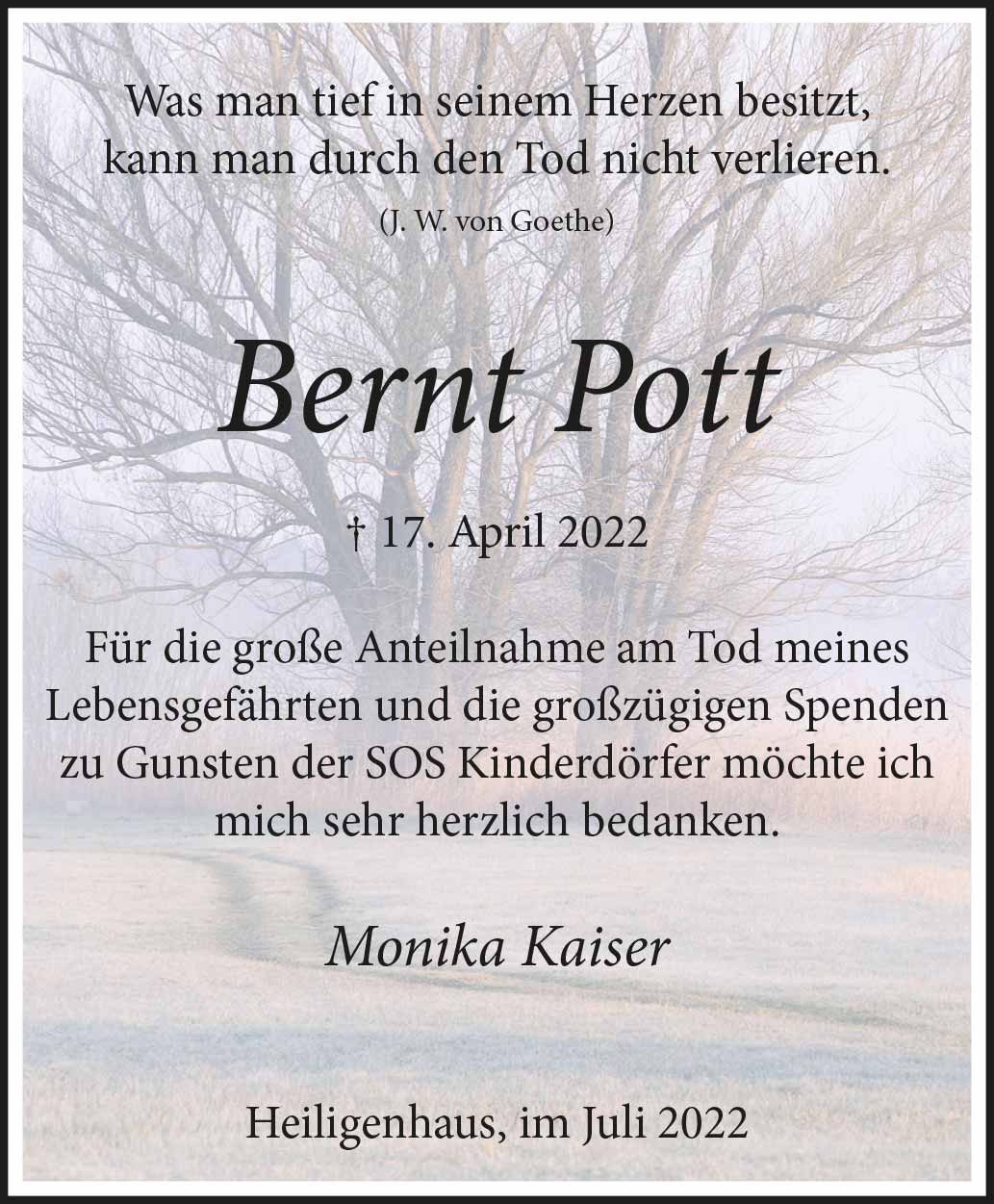 Bernt Pott -Danksagung-