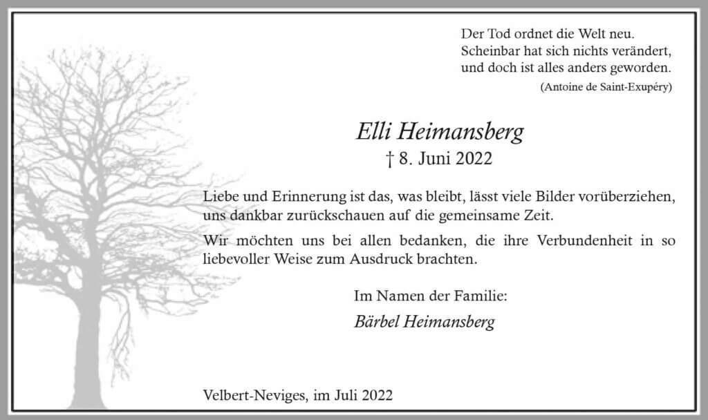 Elli Heimansberg -Danksagung-
