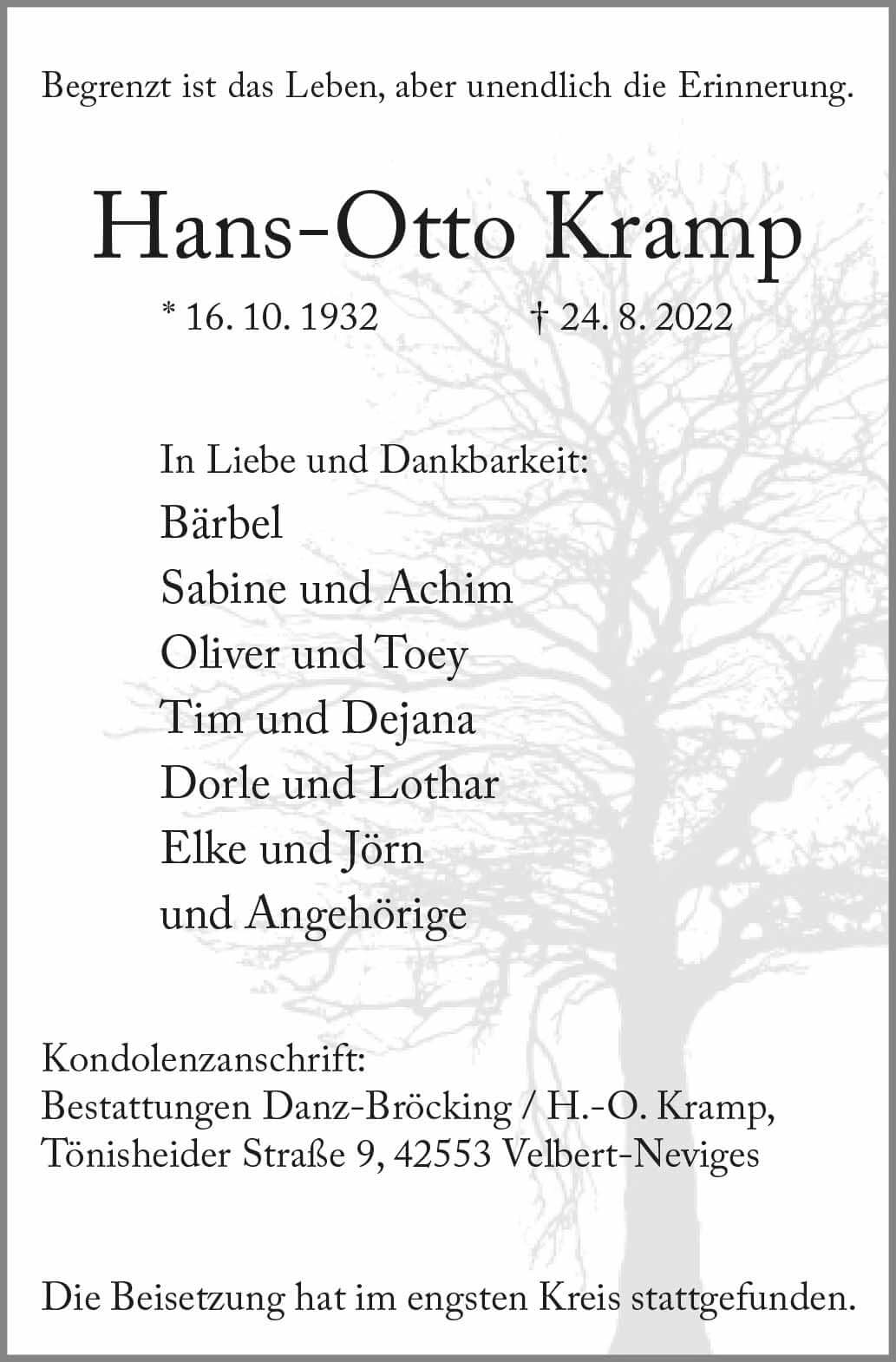 Hans-Otto Kramp † 24. 8. 2022