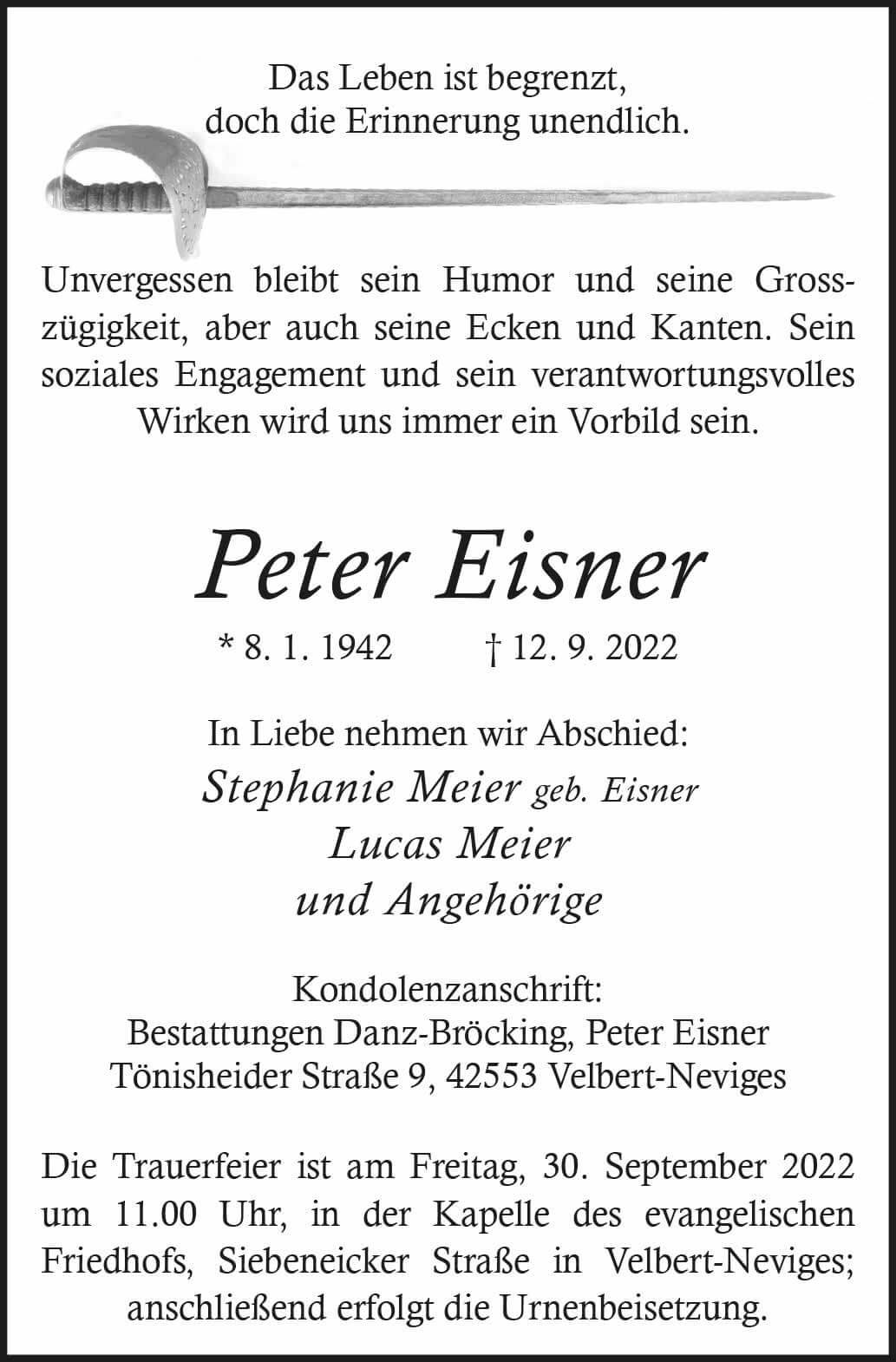 Peter Eisner † 12. 9. 2022