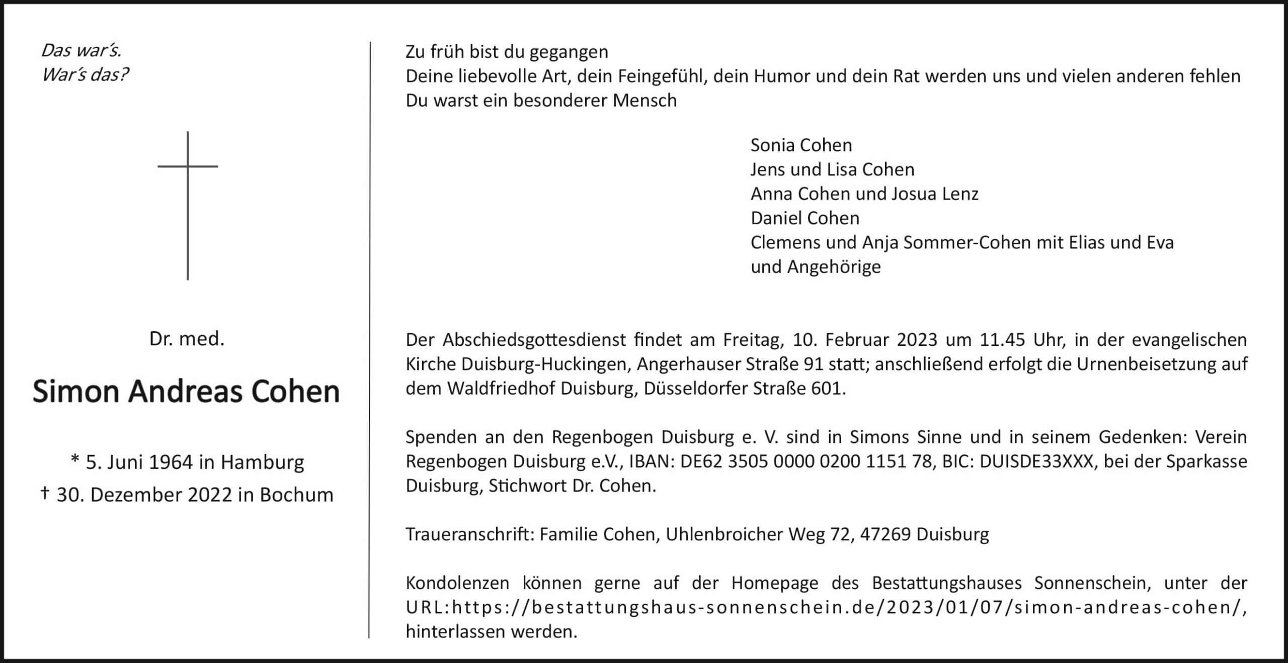 Simon Andreas Cohen † 30. 12. 2022