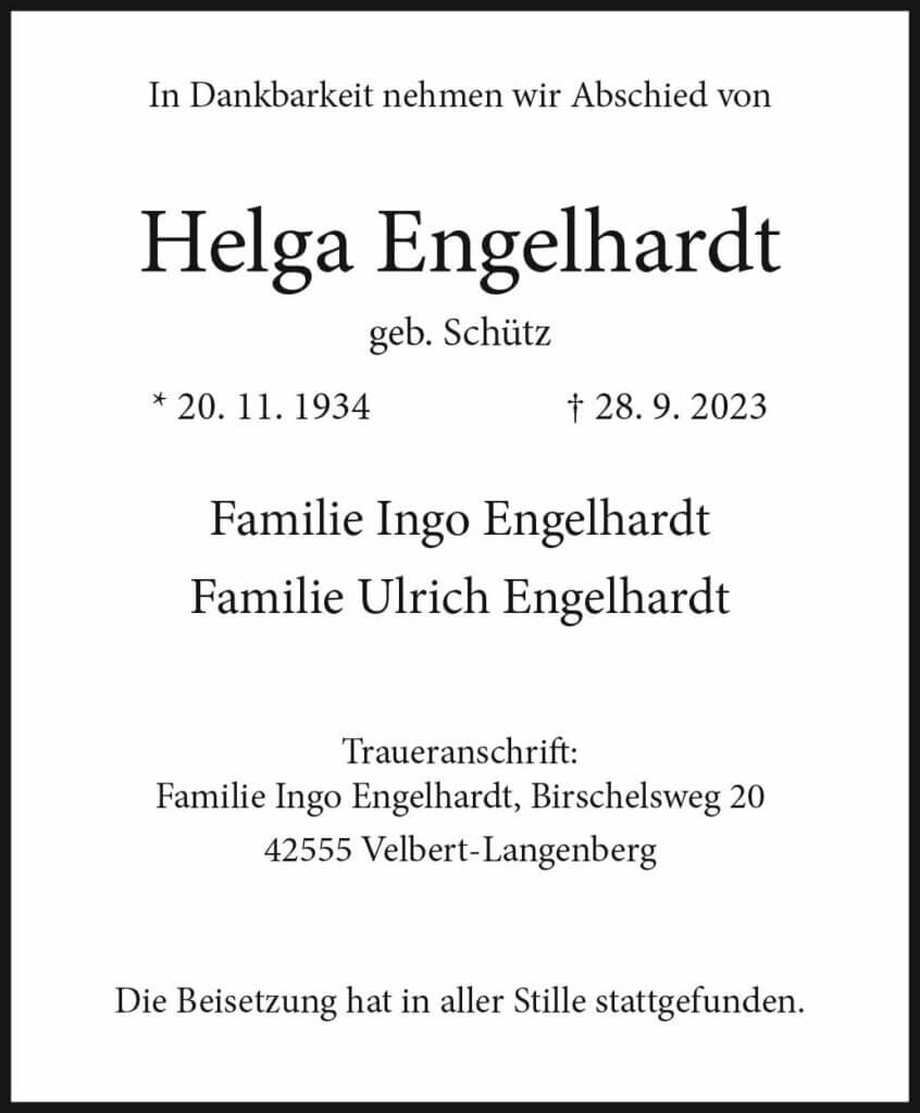 Helga Engelhardt † 28. 9. 2023