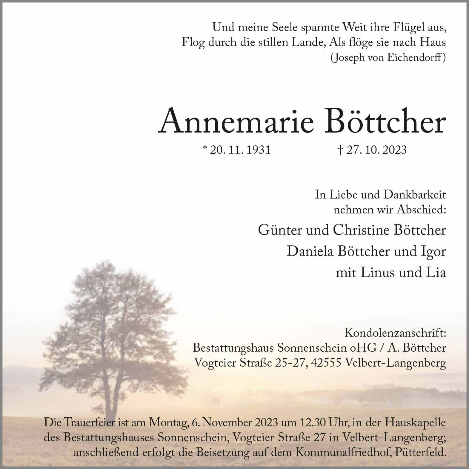 Annemarie Böttcher † 27. 10. 2023