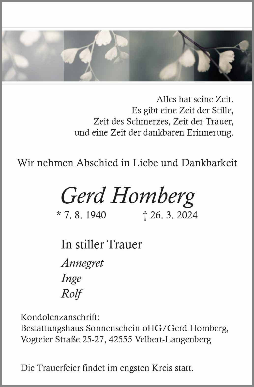 Gerd Homberg † 26. 3. 2024