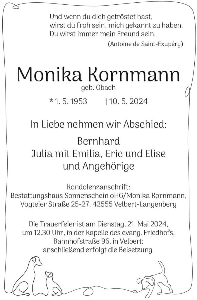Monika Kornmann † 10. 5. 2024