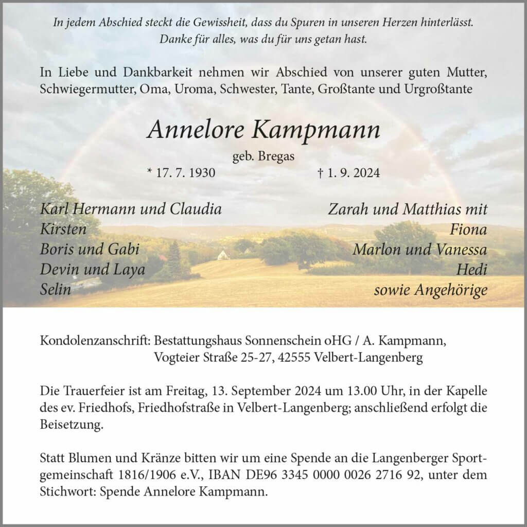 Annelore Kampmann † 1. 9. 2024