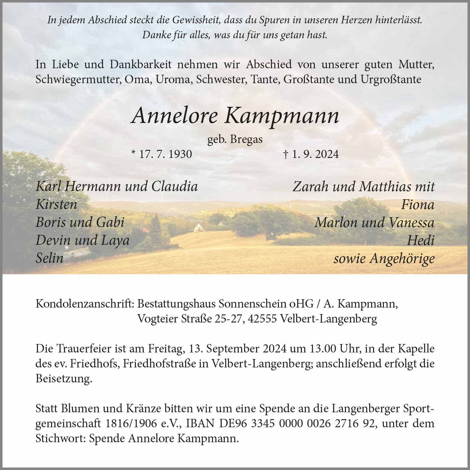 Annelore Kampmann † 1. 9. 2024
