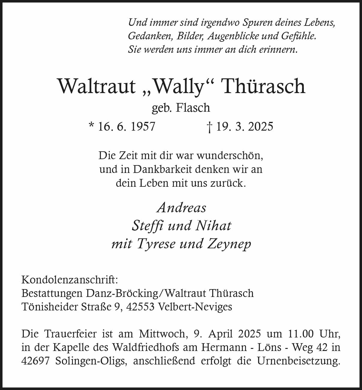 Waltraut „Wally“ Thürasch † 19. 3. 2025
