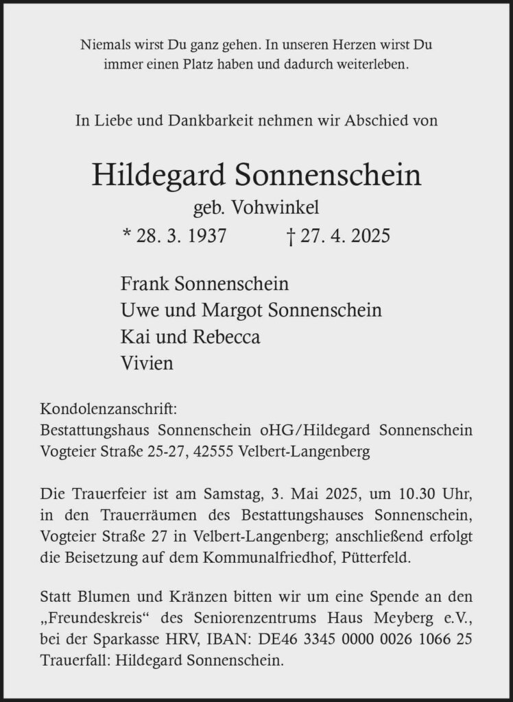 Hildegard Sonnenschein † 27. 4. 2025
