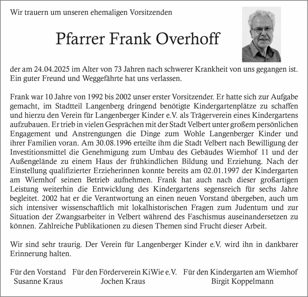 Frank Overhoff † 24. 4. 2025