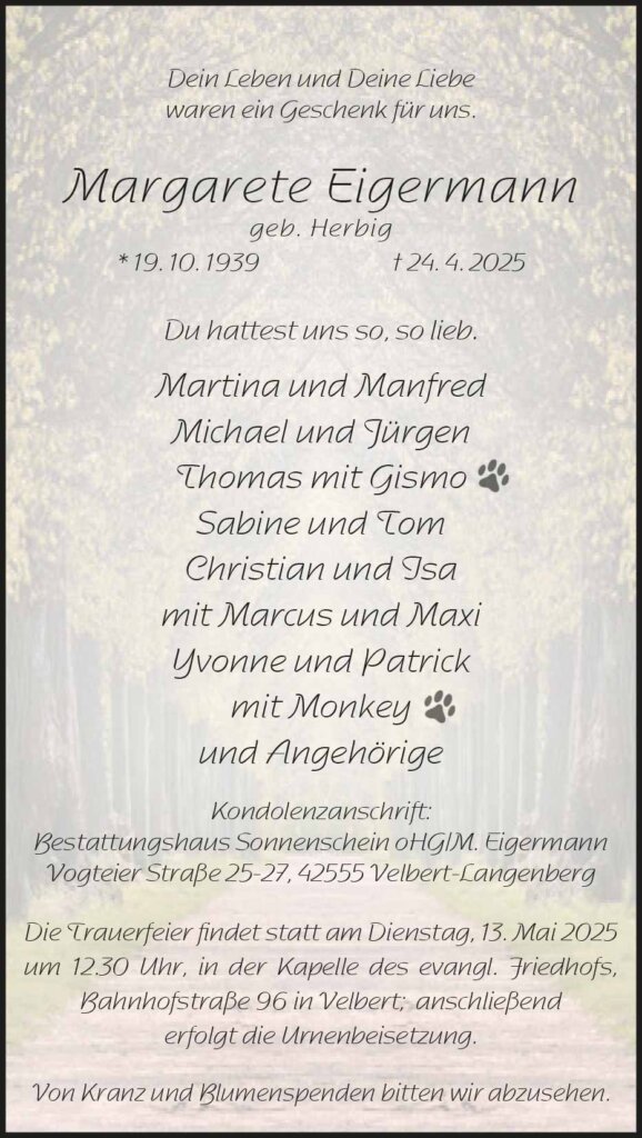 Margarete Eigermann † 24. 4. 2025