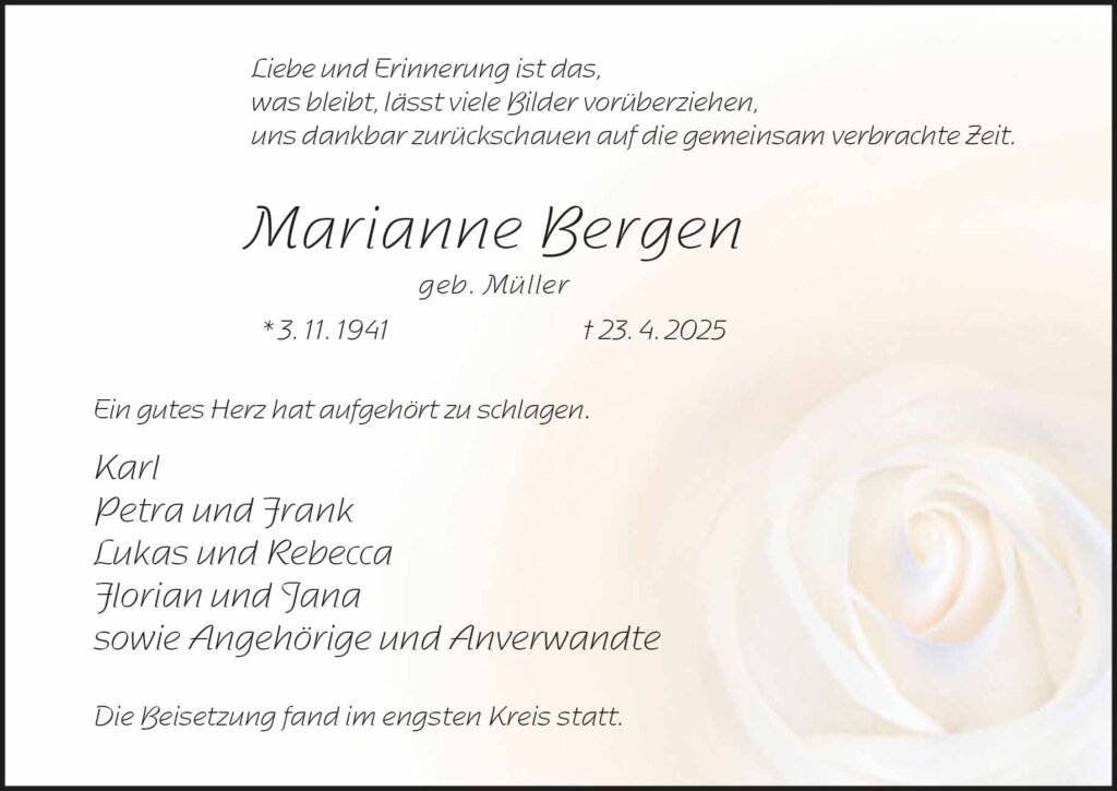 Marianne Bergen † 23. 4. 2025