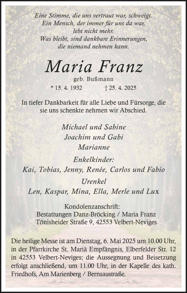 Maria Franz † 25. 4. 2025