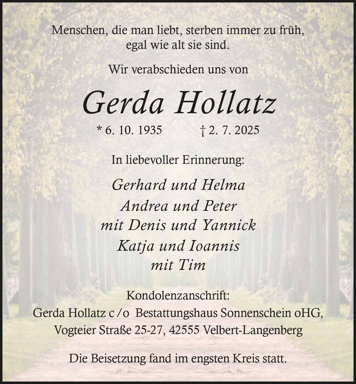 Gerda Hollatz † 2. 7. 2025