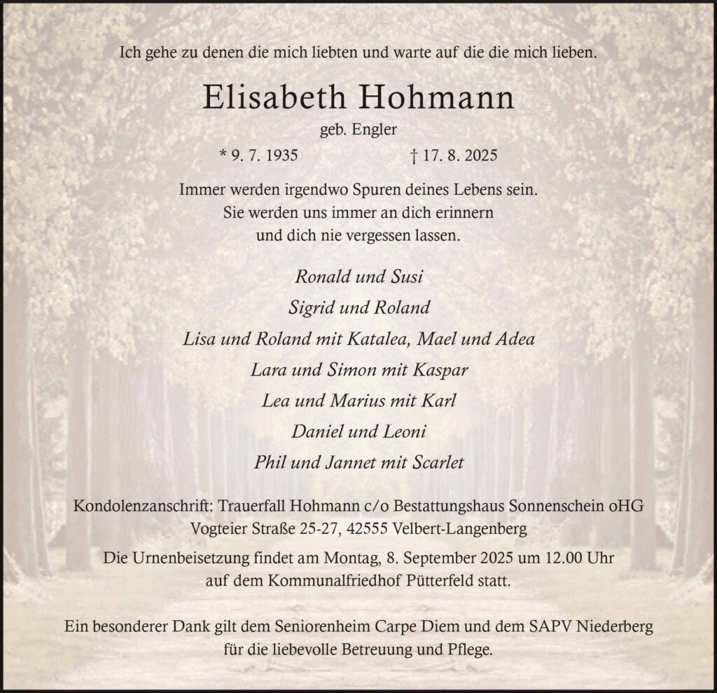 Elisabeth Hohmann † 17. 8. 2025