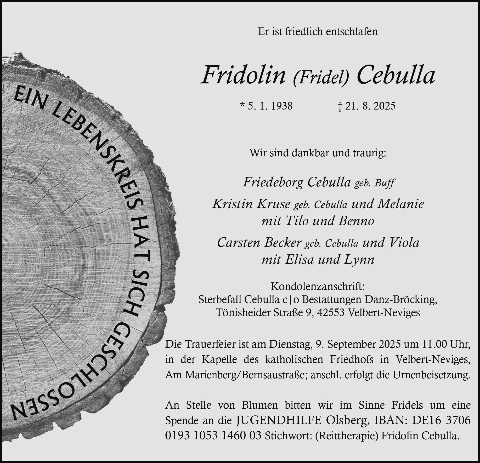 Fridolin (Fridel) Cebulla † 21. 8. 2025