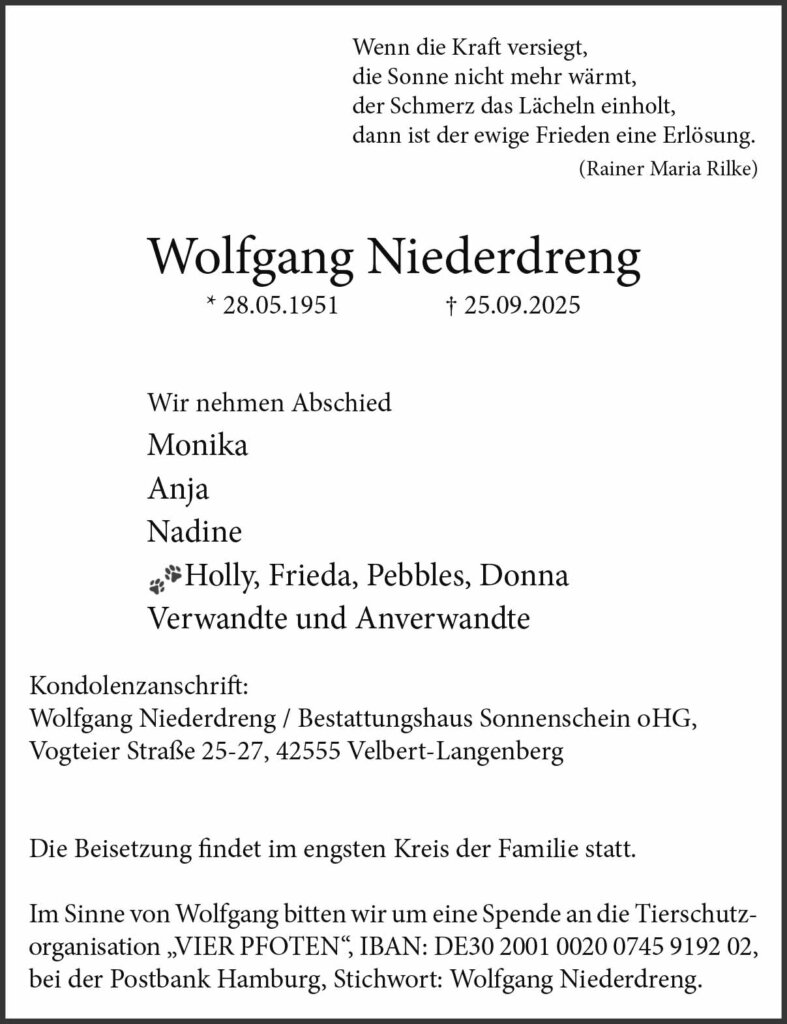 Wolfgang Niederdreng † 25. 9. 2025