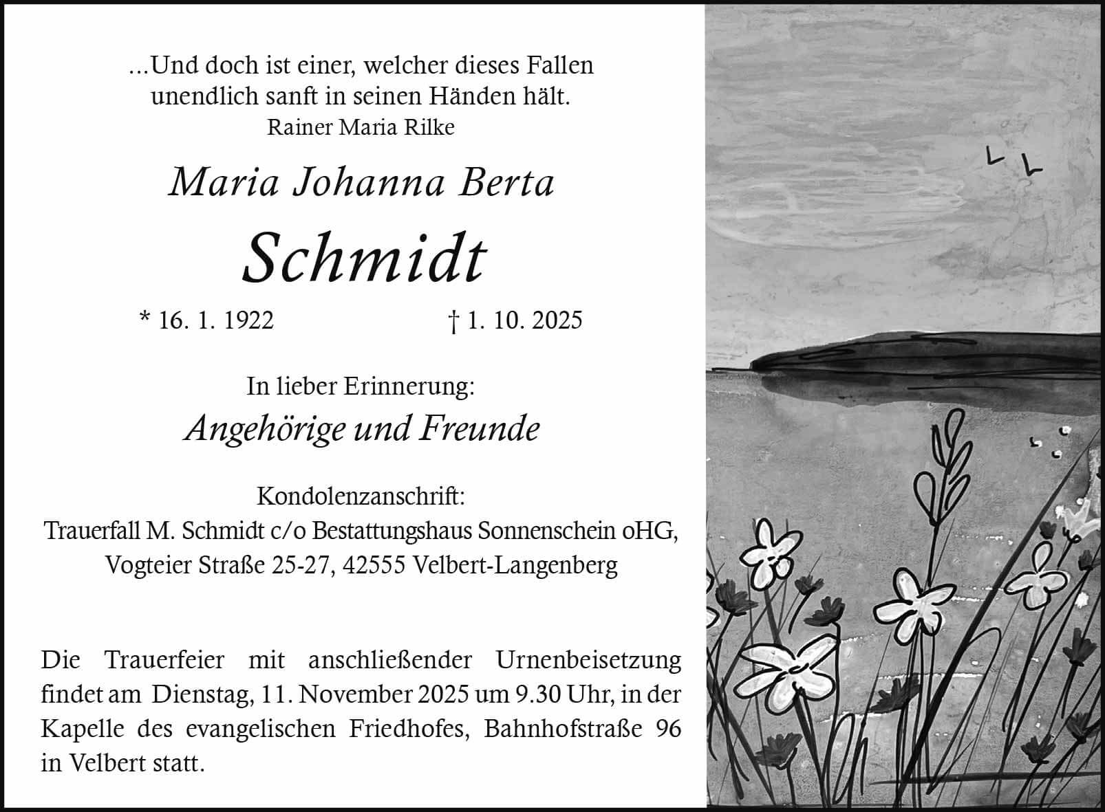 Maria Johanna Berta Schmidt † 1. 10. 2025