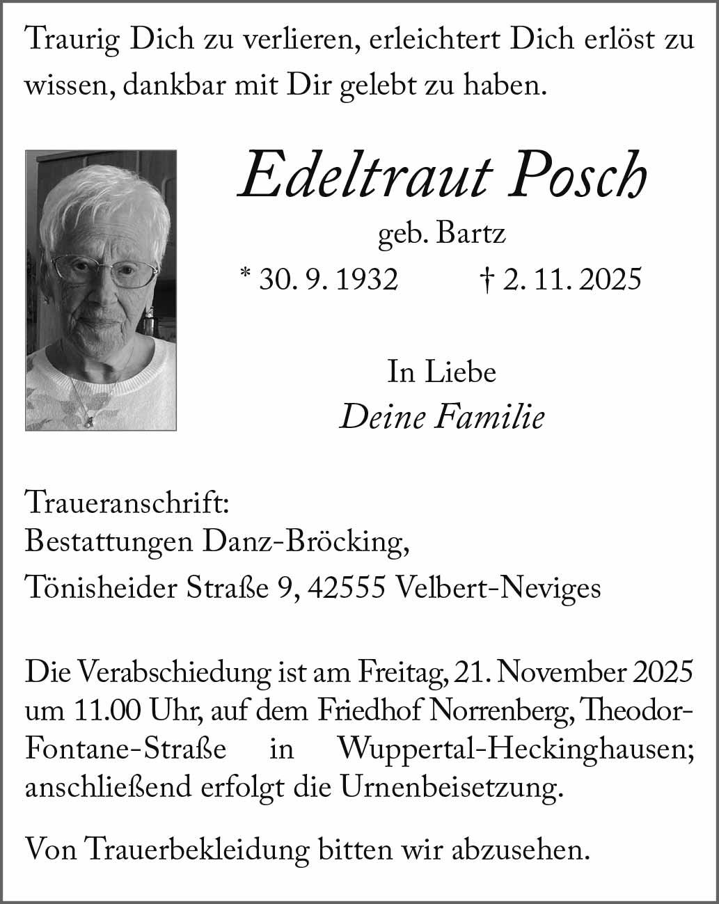 Edeltraut Posch † 2. 11. 2025