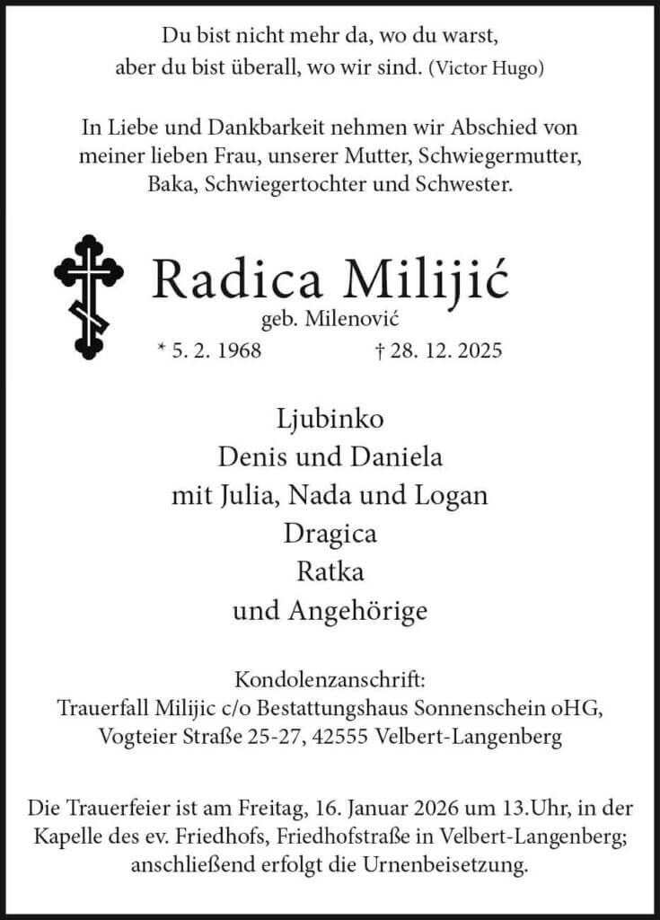 Radica Milijic † 28. 12. 2025