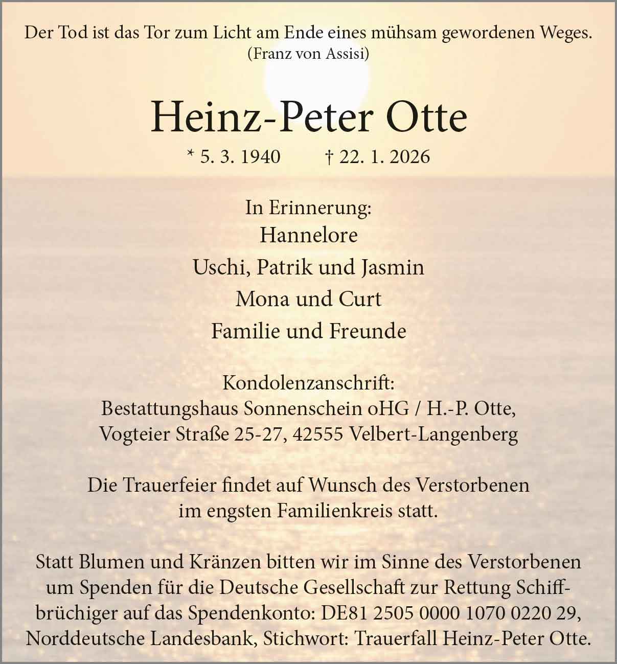 Heinz-Peter Otte † 22. 1. 2026