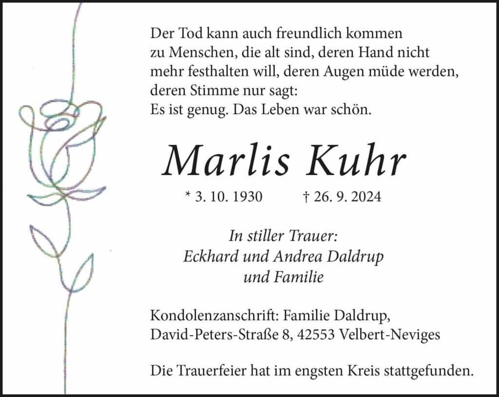Marlis Kuhr † 26. 9. 2024