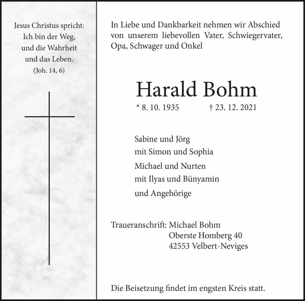 Harald Bohm † 23. 12. 2021