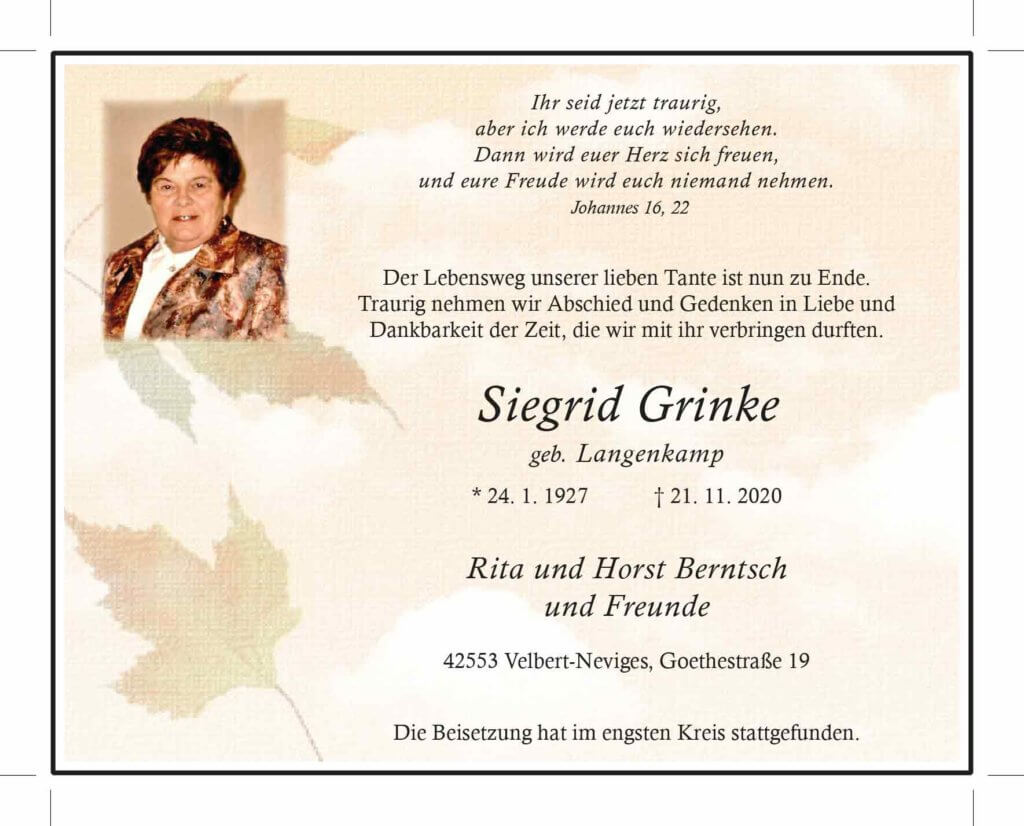 Siegrid Grinke † 21. 11. 2020
