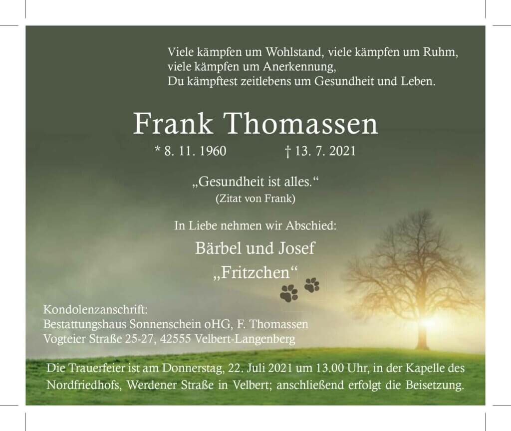 Frank Thomassen † 13. 7. 2021