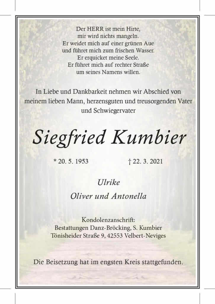 Siegfried Kumbier † 22. 3. 2021