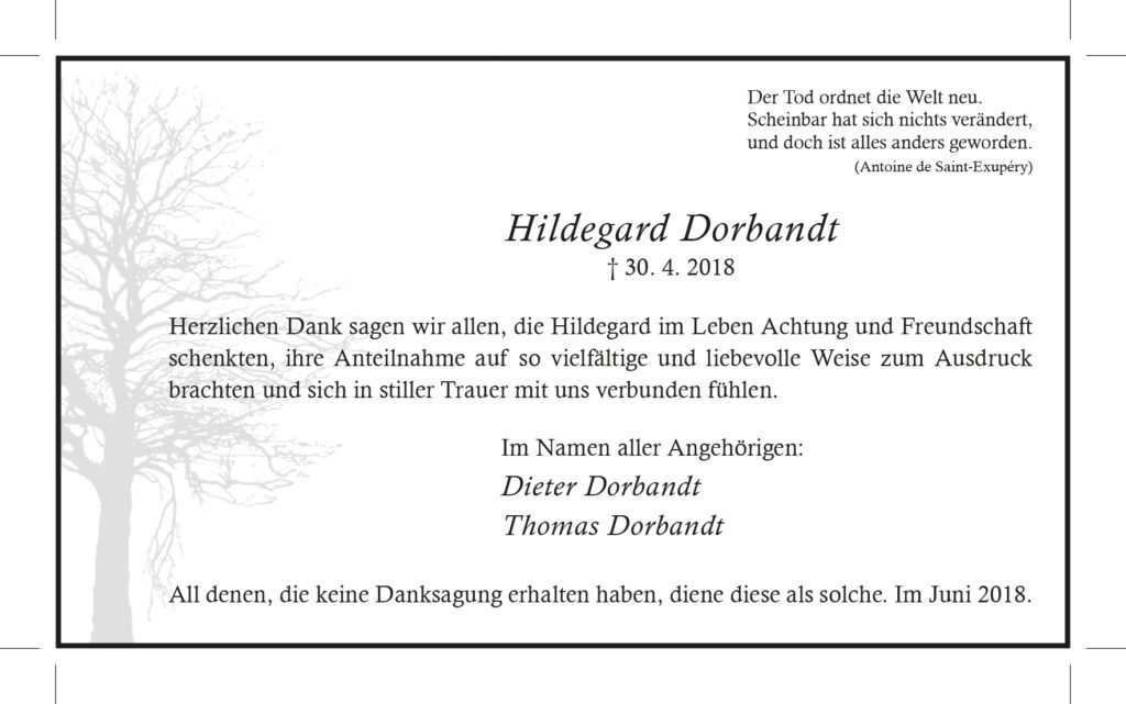Hildegard Dorbandt -Danksagung-