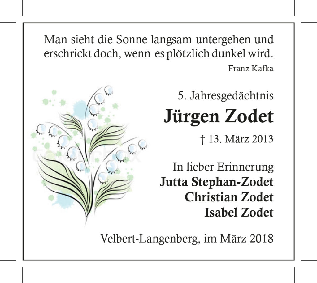 Jürgen Zodet (5. Jahresgedächtnis)