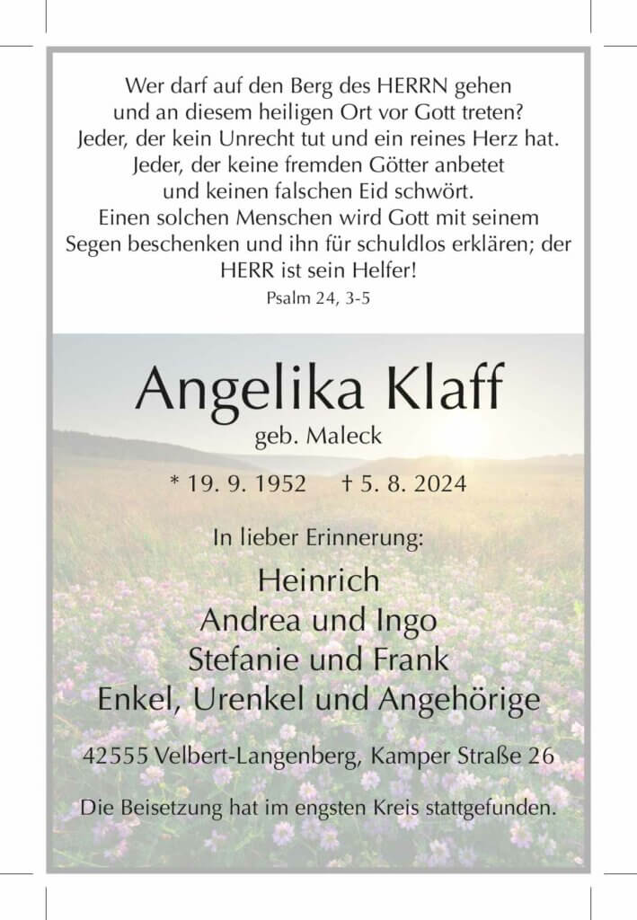 Angelika Klaff † 5. 8. 2024