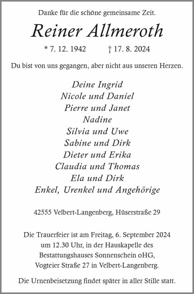Reiner Allmeroth † 17. 8. 2024