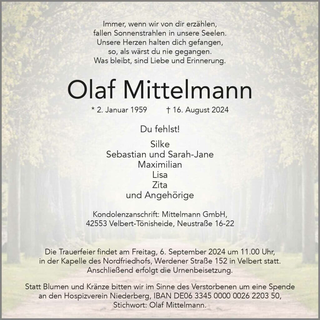 Olaf Mittelmann † 16. 8. 2024