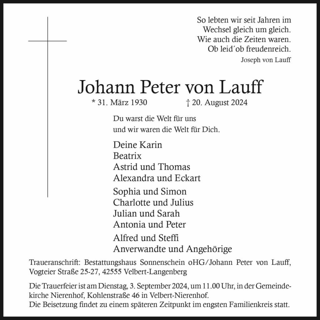 Johann Peter von Lauff † 20. 8. 2024