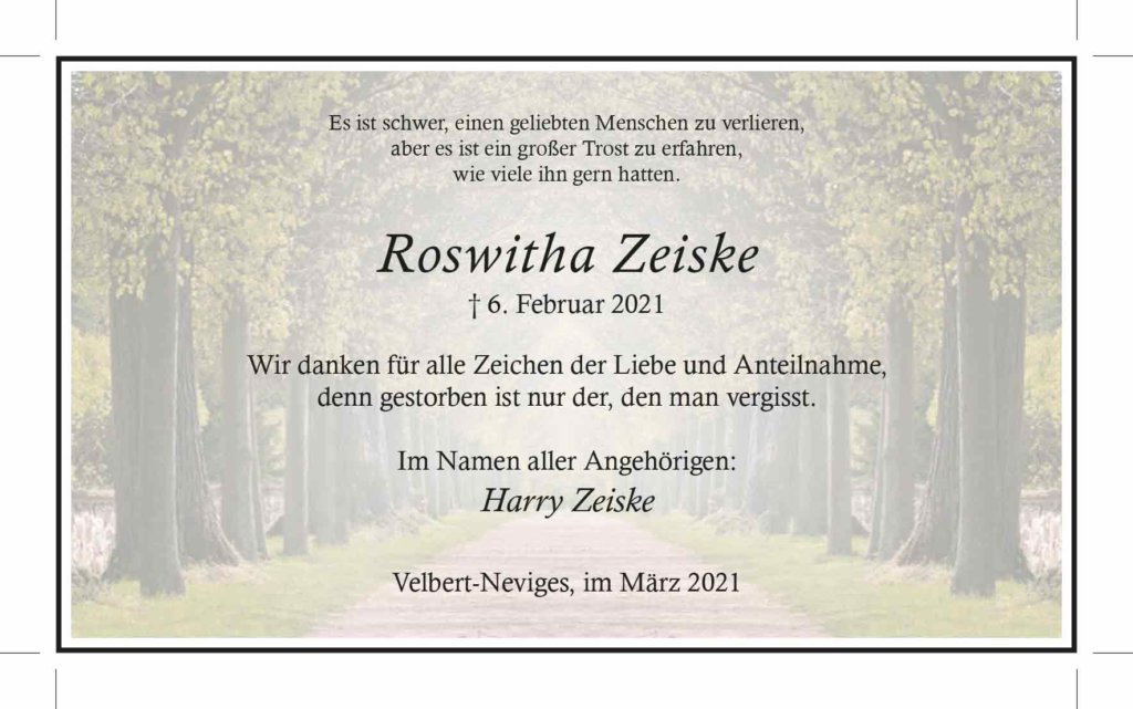Roswitha Zeiske -Danksagung-
