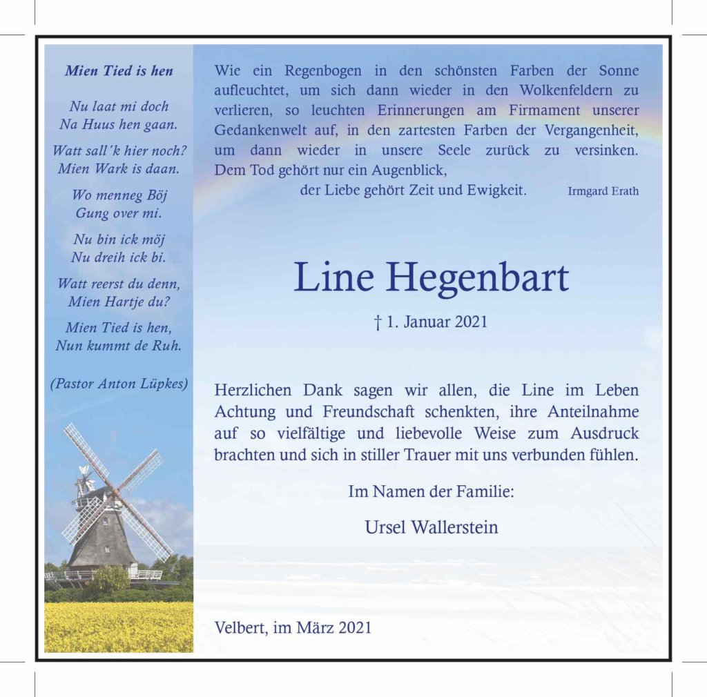 Line Hegenbart † 1. 1. 2021