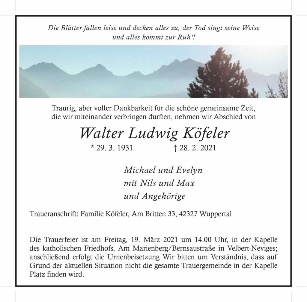 Walter Ludwig Köfeler † 28. 2. 2021