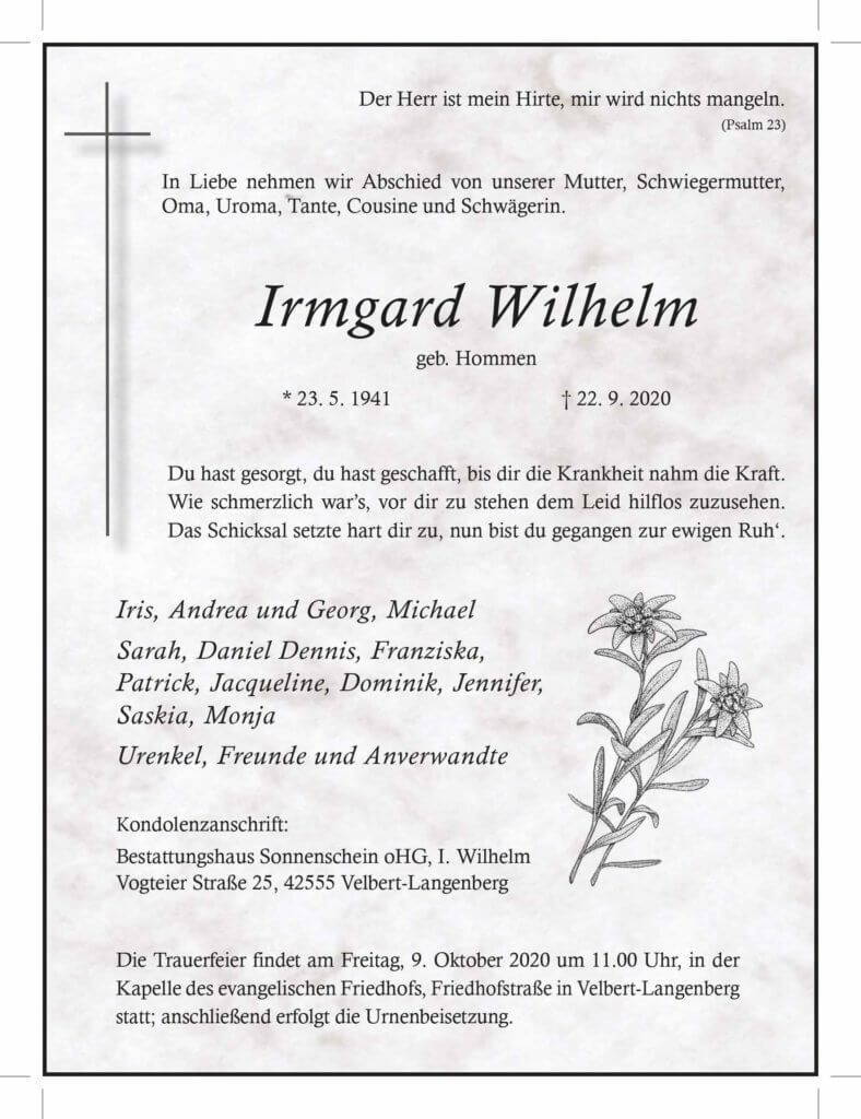 Irmgard Wilhelm † 22. 9. 2020