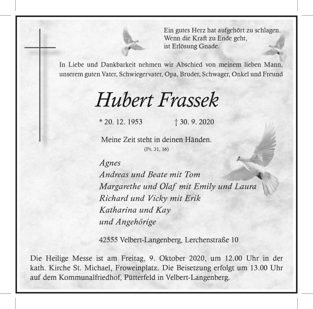 Hubert Frassek † 30. 9. 2020