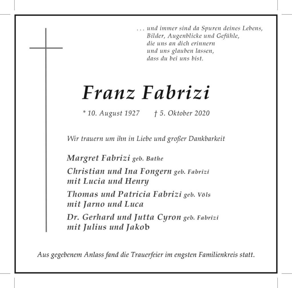 Franz Fabrizi † 5. 10. 2020