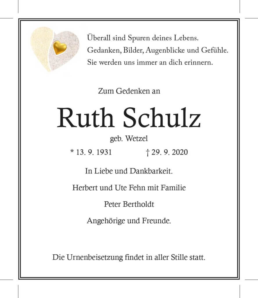 Ruth Schulz † 29. 9. 2020