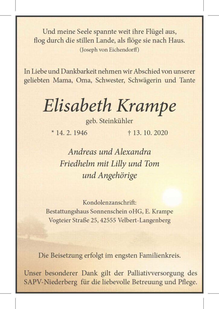 Elisabeth Krampe † 13. 10. 2020