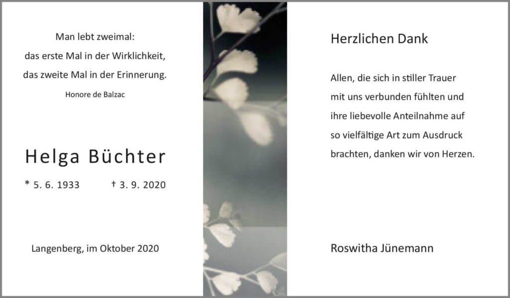 Helga Bücher -Danksagung-